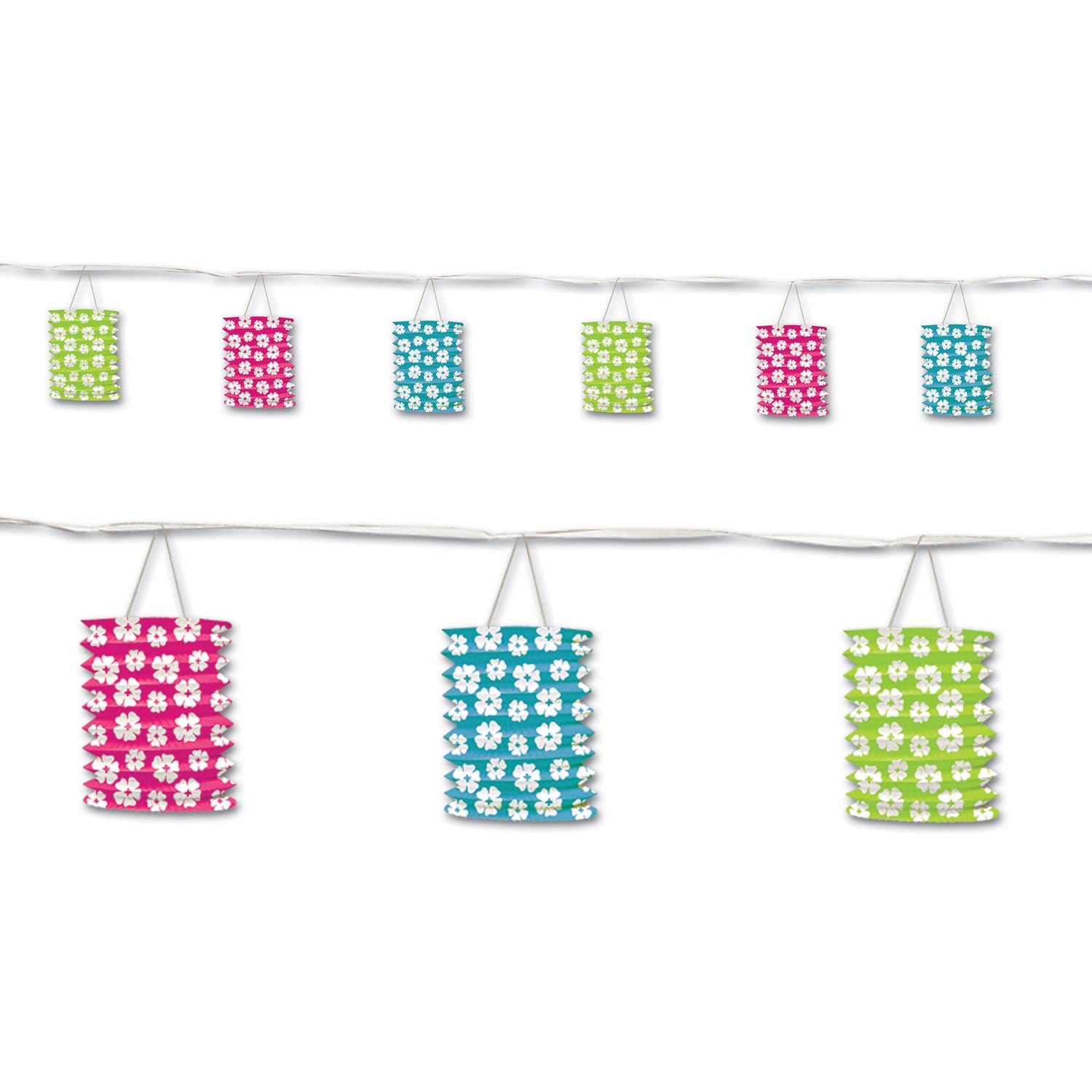 This Hibiscus Lantern Garland is a great idea for summer gatherings and events. Package includes 1 garland. Measures 12' long.