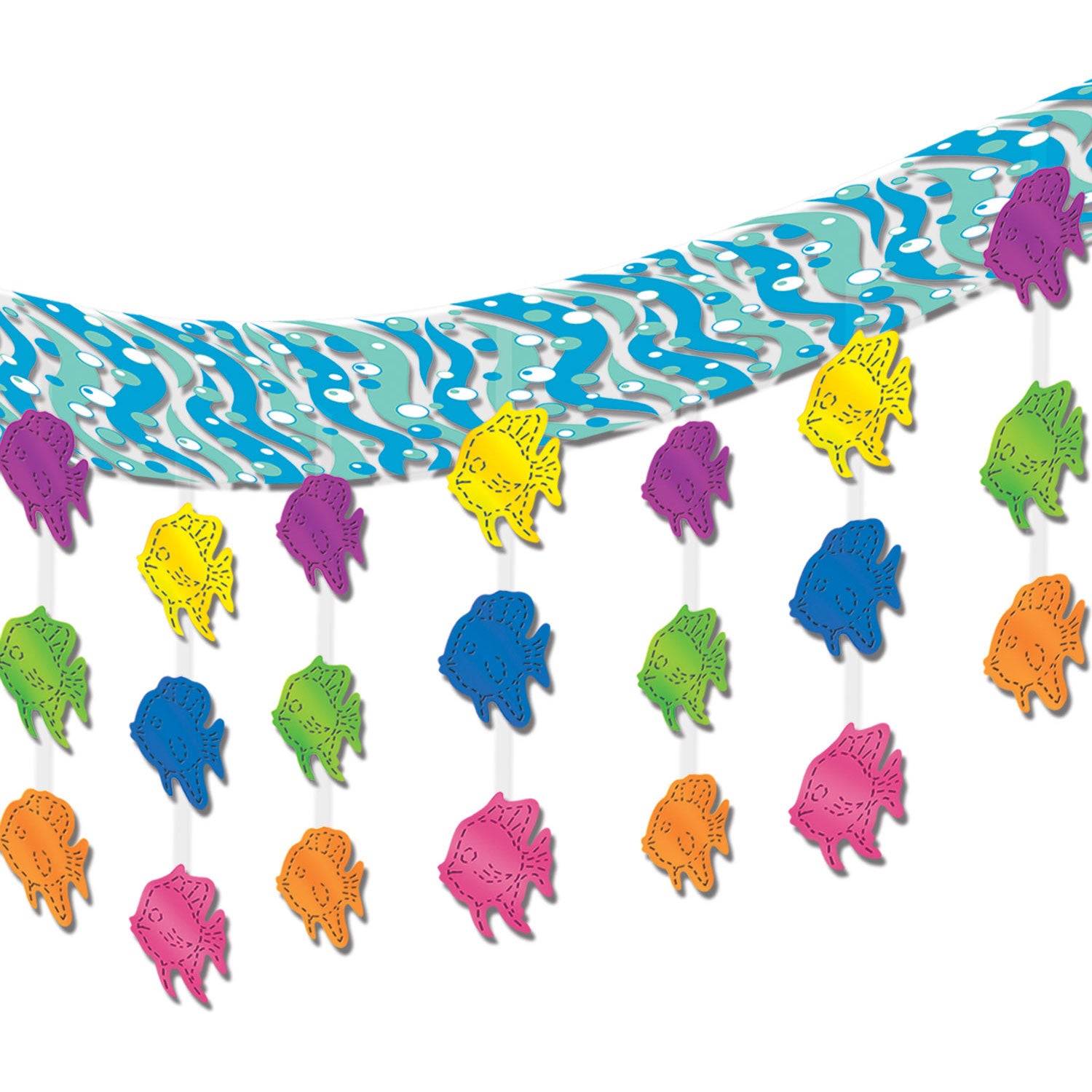 Add some sparkle to your luau party with this Tropical Fish Ceiling Decoration. Hang from the ceiling to create a look and feel that's truly tropical. Measures 12" x 12'. 1 per package.